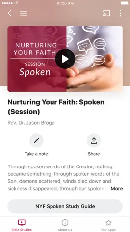 Note-taking is here! Jot down your thoughts on-the-go, directly in the app. You can create a note via the app menu, or by tapping the “Take a Note” button on media in the app. Your notes will sync across devices, so you never have to worry about losing your notes when you get a new phone or tablet.
