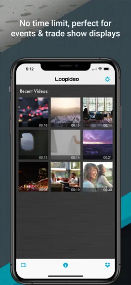 1.) Tap a video to select, click "Play Videos" to start Looping.