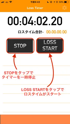 計りたい時間をまず設定してタイマーが動いている間にlossボタンを押すだけで手軽にロスタイムが計れます