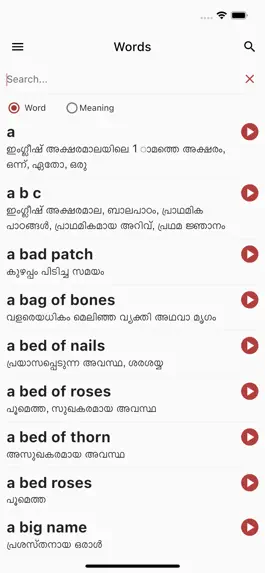 This app contains most popular English words with Malayalam meanings and pronunciations to improve your language skills.