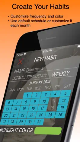 Custom Scheduling: Each habit has it’s own schedule. Give a habit a default frequency, say 3 times a week, and adjust which three days those are each month as you go.