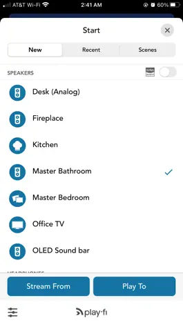 • You can now select “Scenes” from the Start screen for easy recall of your favorite music, playlists, or stations