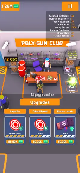 Collect target boards, bring them to shooting range and your customers will do the rest. Just enjoy watching those guns fire all at the same time. Then, unlock new weapons to make your customers shread those boards even harder and earn money at an incredible rate!