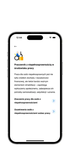 Aplikacja zawiera cenne informacje nt. wspierania i lepszego wykorzystywania potencjału osób z niepełnosprawnościami w miejscu pracy w zakresie tego, co można zrobić dla samego pracownika z niepełnosprawnością, dla całego zespołu pracowniczego, jak również co można zrobić w zakresie stanowiska pracy dla osoby z niepełnosprawnością.