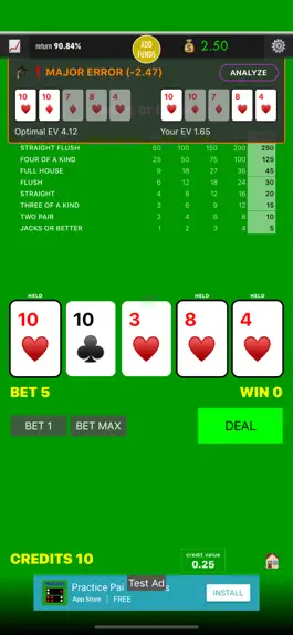Choose your paytable: in the settings for each game you can choose from different paytables to practice with.