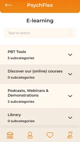 Finally, the E-learning section gives you the opportunity to deepen your knowledge and grow your skills as a therapist or coach.