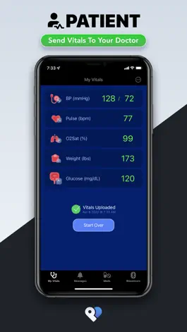 - Patient now has the ability to via a history of their last 7 vitals submitted via the "Vitals Hx" screen