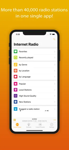With Receiver you are always informed about the latest news from a wide variety of sources: sports, Bundesliga live, reports, radio plays, news, music, podcasts, reports, travel, weather and much more. Listen to stations like BBC, NPR, ESPN, Bestnetradio, KCRW, Radio Paradise and many more.