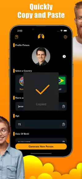 Are you looking for a random bio generator app to meet whatever goals you have? How about using a random information generator app to get a bio for sharing with others and to avoid sharing your actual information? With this Random Name Generator: Profile app, you can not only generate a random full name, address, email and password but also pick any age, country, picture, user name and other personal information without any trouble. Whether you want to create a fake female or male ID, this random bio creator will do the deed for you. Prank your friends with a fake ID or ensure the privacy of your actual information by sharing the random generated fake information with strangers at the hour of need. Any person who is in need of a fake profile can use this fake information generator app to get completely random personal bio data and details for any purpose.