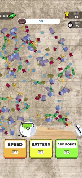 Increase your speed, battery and vacuum robots to build your vacuum empire!