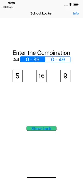 If there are lockers with locks at your school, you'll probably want to get used to opening yours quickly. This App gives you a chance to practice. This uses a right, left, right opening sequence and forces the correct direction for each combination number.