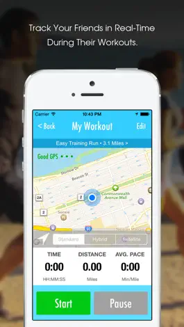 • Selected friends receive periodic updates of your workout including, for example, current location, time, distance, average pace, and last update.