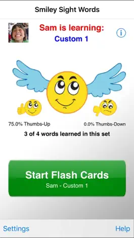 The 1,600+ sight words included with Smiley Sight Words comprises up to 85% of the text in a child's early reading materials. A child who can recognize just 8 of 10 words in a sentence can typically understand its meaning! "Sight words" often cannot be illustrated via simple pictures or sounded out according to regular phonetic decoding rules, thus they need to be learned and recognized "on sight". Smiley Sight Words is a handy way to keep track of and encourage a child's mastery of their sight words.