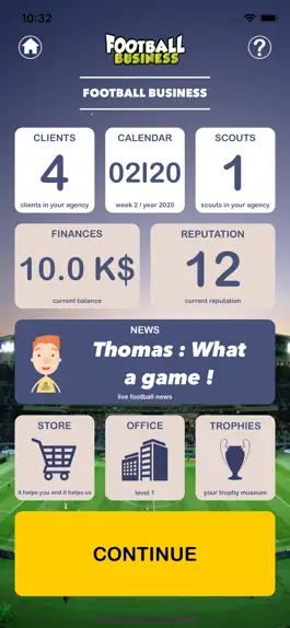 Your ultimate goal: to win the biggest trophies, through your clients, in world soccer: championships of the biggest countries, European club cups, world championship.