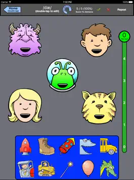 - A “score to advance” feature allows an adult to provide appropriate feedback, models, modifications, and reinforcement for every sound the child produces in practice.