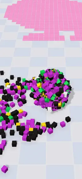 Sticky Pixel is a game where players control a ball to stick to small cubes, and then roll the ball onto a canvas to fill in pixel art. The goal is to complete a beautiful pixel art. Players can upgrade the speed and weight capacity of the ball to transport more pixel blocks each time.