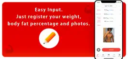 A simple and easy to use app that makes it easy to continue. All you have to do is register your weight, body fat percentage and photos.