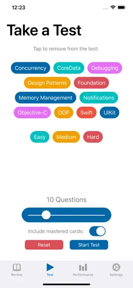 StudySwipe let's you track your mastery of iOS questions and topic including and not limited to: Swift, Core Data, Concurrency, Networking, UIKit, Animation, and much much more.