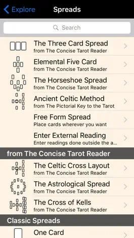 Shows the description for the card position in the spread along with the card meaning. Searching in the journal now searches the full text of the journal entries, including the card names. There is a new user interface for pick cards from list that allows you to correct any mistakes you might make. Card of the Day now only appears in the journal once per day. Shows the card name for One Card readings in the journal index. The book reader now launches more quickly. Revisions to The Concise Tarot Reader. Various minor bug fixes.