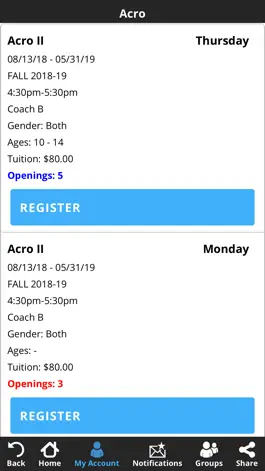 The Movement app allows you to register for classes, parties and special events. The Movement calendar, social media links, and contact information are also easily accessible from the app.