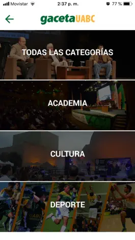 Cultura, Deporte. Pueden estar acompañadas de galería fotográfica y/o
