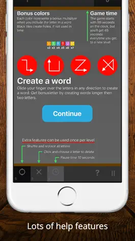Do you think it sound difficult? We added some extra features to help you make a new record. You can shuffle the board and replace all the letters, remove annoying letters and pause time. Each time you gain a level, you will be awarded an additional 45 seconds of game time, so that you can become the world champions of VERBUM.