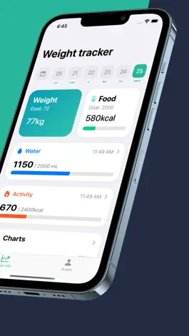The app allows to record daily weight and additional measurements, set goals and track them. In addition to weight measurements, you can keep track of nutritional value, activity and water intake. This way you will have more accurate statistics on how nutrition and activity affect your performance.