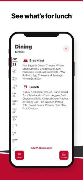 Within the dining section, you'll find an easy to navigate, weekly menu, sorted by day and meal type.