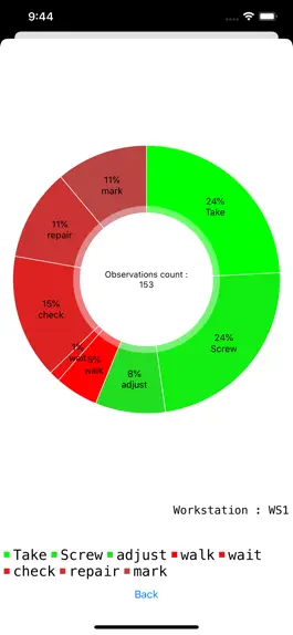 The sampling analysis is a statistical method that quantify the different activities of an operator. When activities are labeled as "added value" or "non added value", it gives you the red/green scheme.