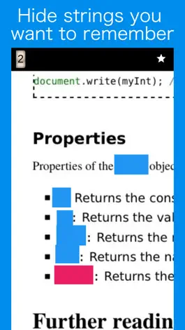 With this method, you first hide the strings you want to remember from a textbook or notebook, and later see repeatedly if you have remembered them. This app turns memorization sheets into flashcards.